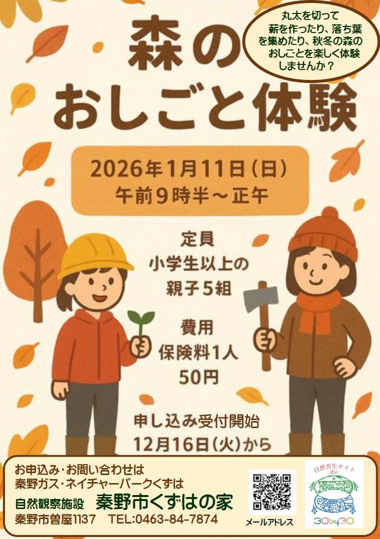 内 容 秋冬の森のおしごとを楽しく体験します!