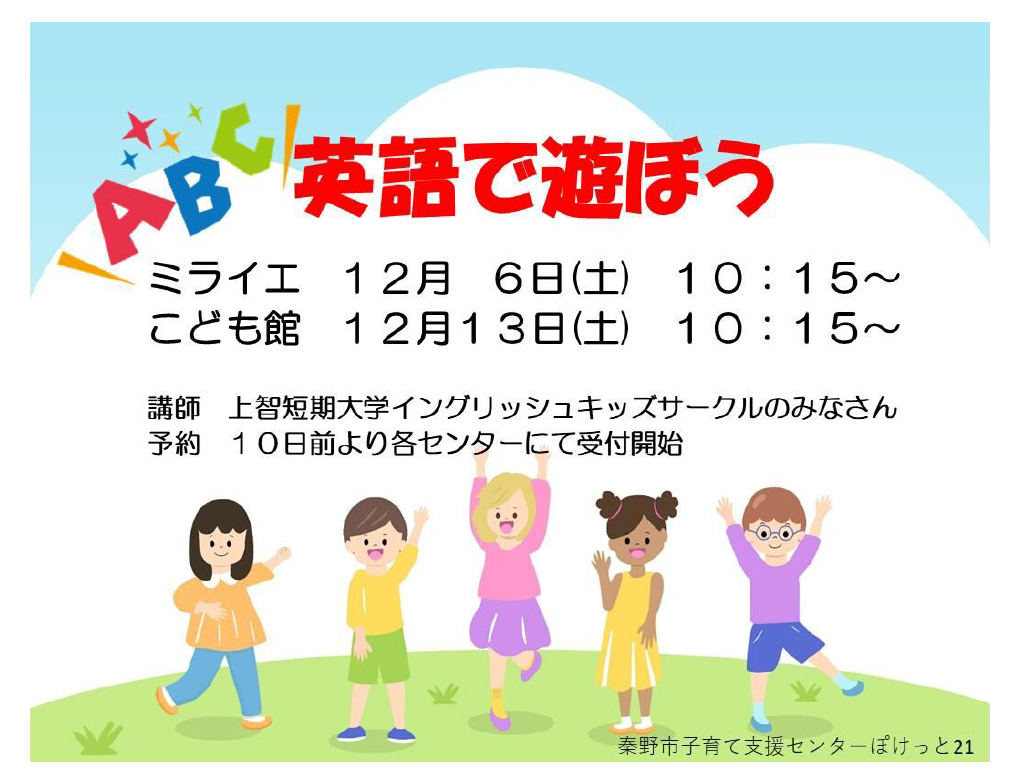 日程は、英語で遊ぼう(PDF/128KB)をご覧ください。