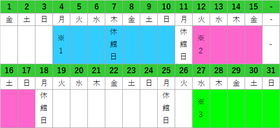 - 注意:各催物は、それぞれ展示等の時間が異なります。