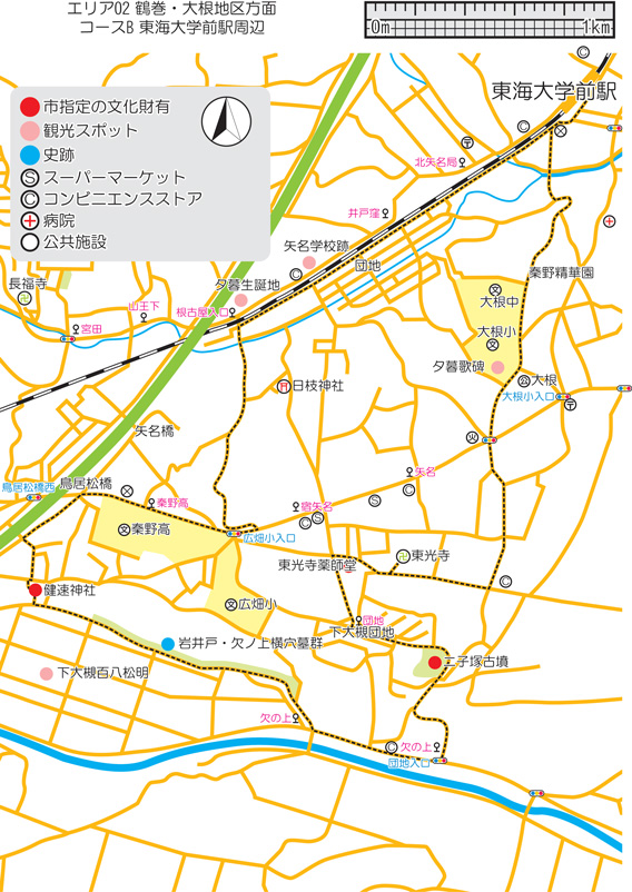 印刷用地図データはエリア02鶴巻・大根地区方面コースB東海大学前駅周辺をクリック!
