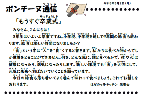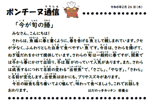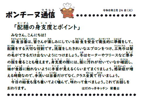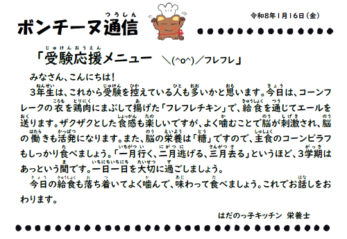 16日(金曜日) 受験応援献立「フレフレチキン」