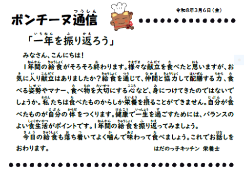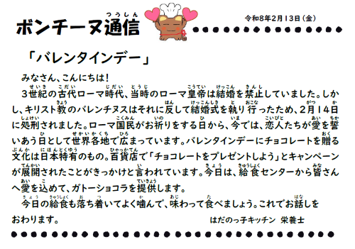 13日(金曜日) バレンタインデー献立「ガトーショコラ」