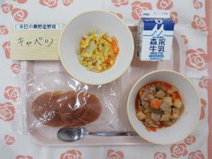 コーンピラフ、照り焼きチキン、野菜のスープ煮、アセロラゼリー、牛乳