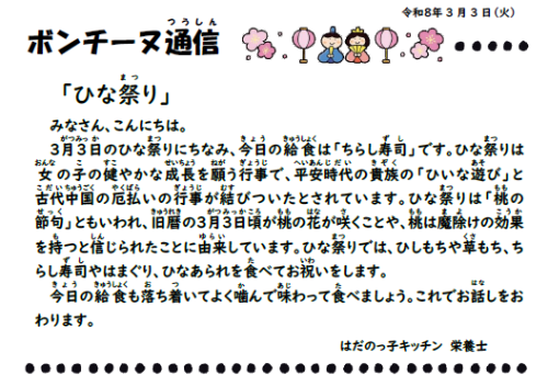 3日(火曜日) ひなまつり献立「ちらし寿司」