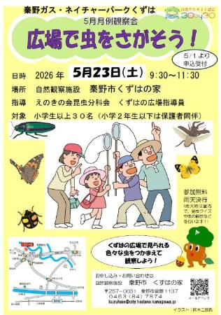 5月の月例観察会「広場で虫をさがそう!」チラシ (PDFファイル: 425.4KB)