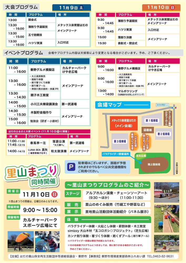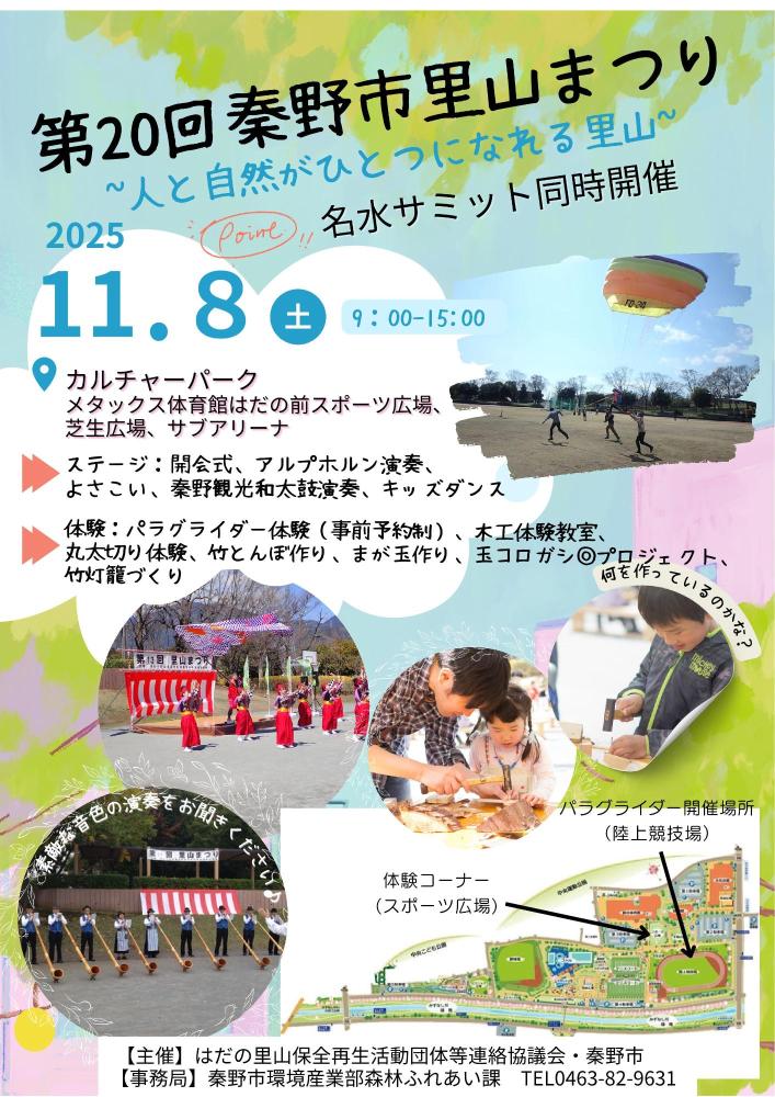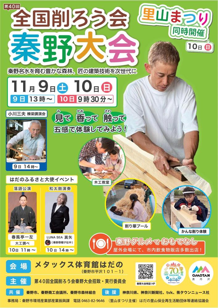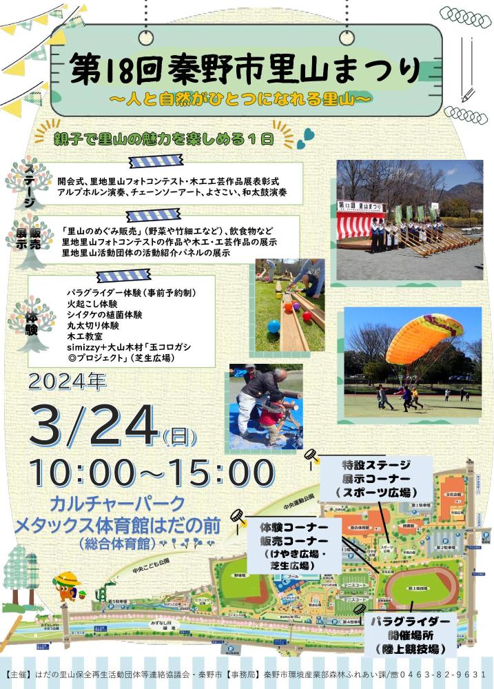 里山保全再生の大切さを楽しみながら学べるイベントです。地元産の農産物などの「里山の恵み」の販売、丸太切り体験、木工教室など、秦野の自然の魅力に触れる体験をしませんか。