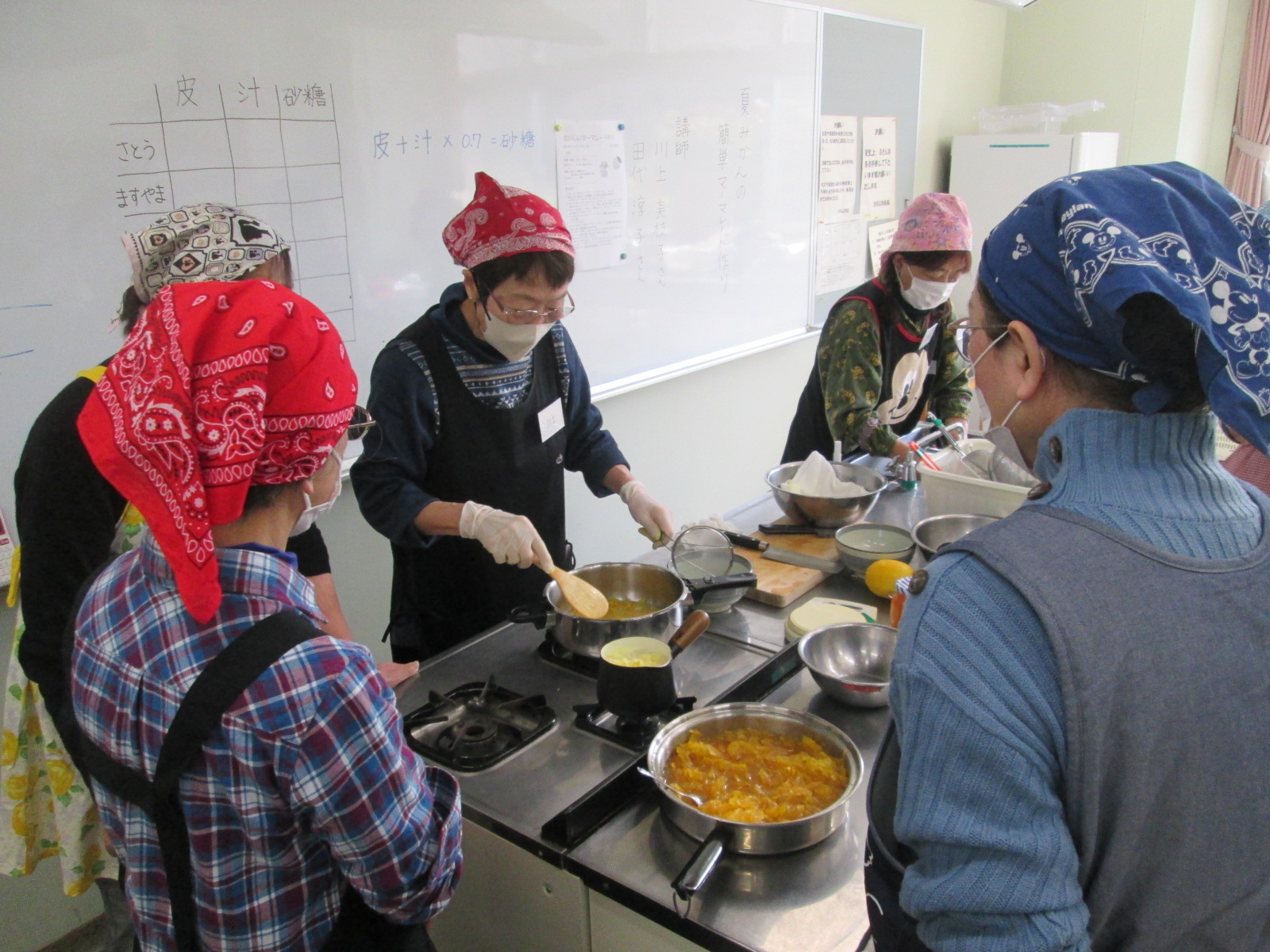 毎年恒例の「夏みかんのマーマレード作り」を開催しました。講師が各テーブルを回り、マーマレードの硬さなどを確認しながらアドバイスしてくれるので、皆さんきれいな色のマーマレードが完成しました。また手際も良く片付けもスムーズでした。最後に講師が作ったマーマレードジャムとクラッカーを、紅茶を飲みながら試食をし、終始和やかな雰囲気でした。