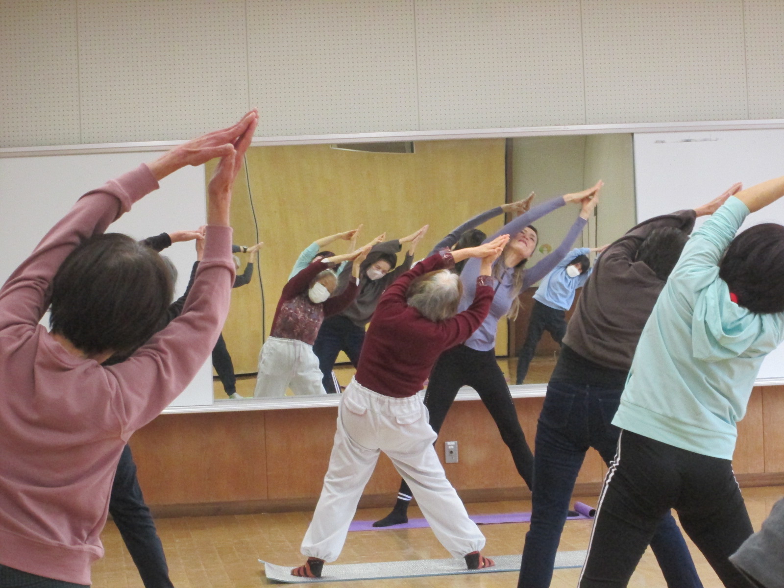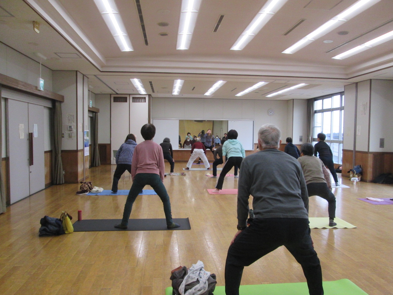 大変人気で前回と同様、多目的ホールで開催しました。講師がストレッチ中に見回りながら、ひとりひとりに丁寧に指導していました。講座の最後に質問タイムがあり、参加者から普段気になっていることへの質問があり、講師からのアドバイスを熱心に聞いていました。