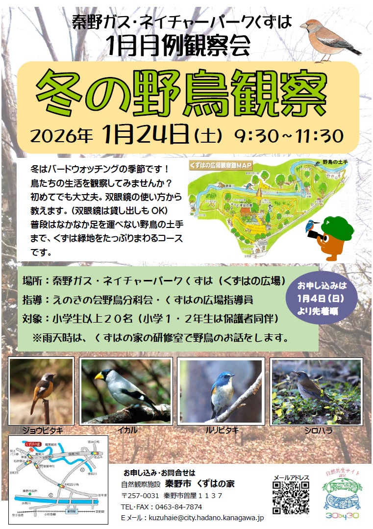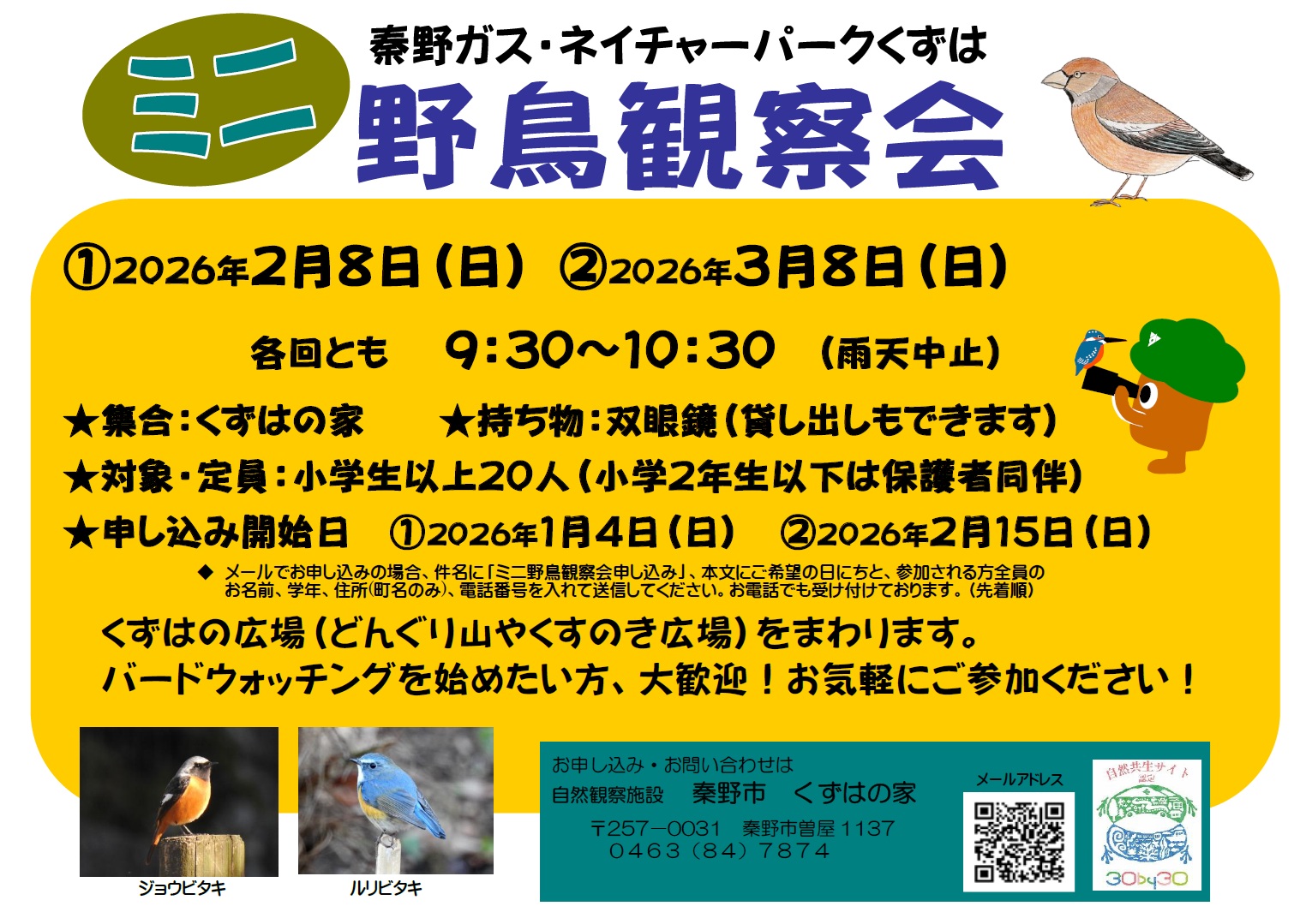 ※ 3月8日のミニ野鳥観察会は、2月15日より受付開始になります