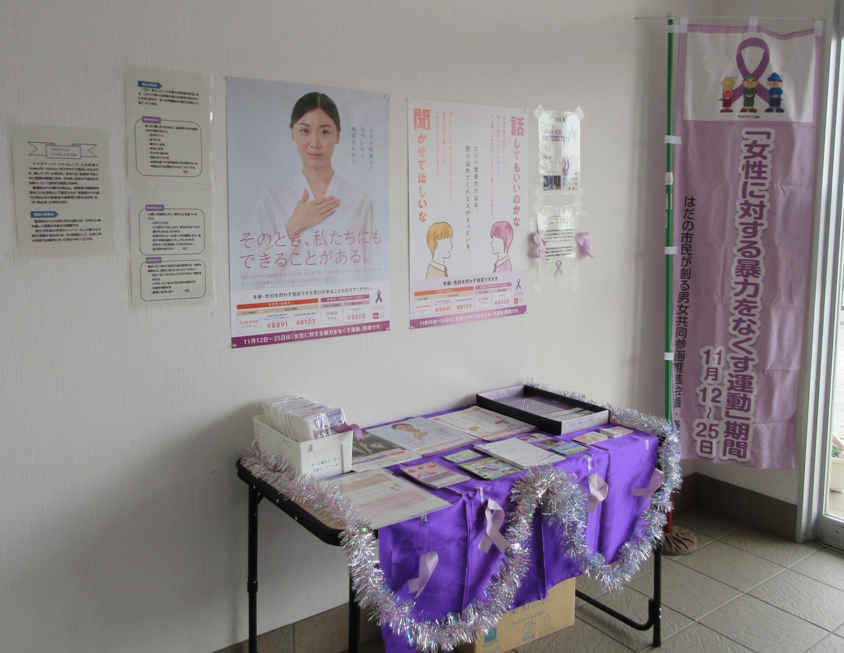 11月12日から25日の「女性に対する暴力をなくす運動」期間に合わせ、啓発活動を実施しました。