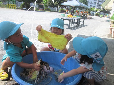 プール遊び 冷たくて気持ちいいね!