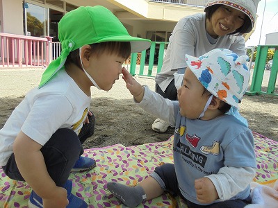 友達に会えたのが嬉しくて鼻をタッチ