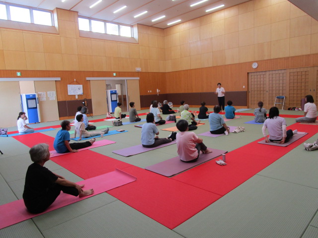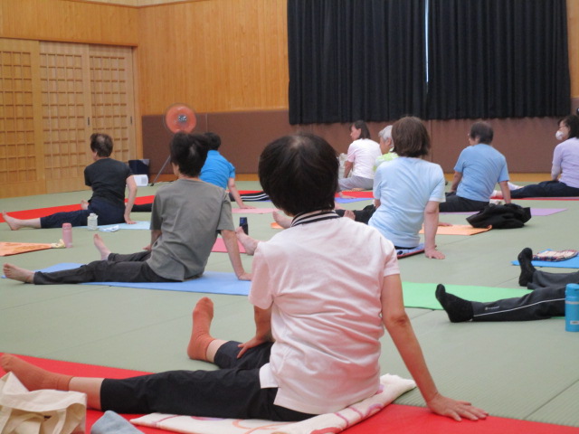 ヨガの活動団体「ヨガシャンティ」の講師の伊藤由美先生が、本格的なヨガをもとに高齢者でも無理なくできるメニューで丁寧に教えていただきました。リンパの流れを良くするツボのマッサージはむくみや肌のくすみ、疲労回復にも効果があり、ストレッチヨガとあわせてみなさんスッキリした。継続して参加したい等の声がありました。