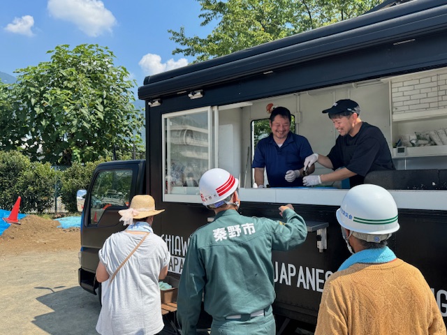 昨年の防災訓練は台風10号の影響で中止となったため、今年は2年振りの開催となりました。自衛隊や秦野警察署をはじめ、災害協定を締結している「秦野市キッチンカー事業者連絡協議会」など、多くの関係機関の皆様にご協力をいただき、実施することができました。