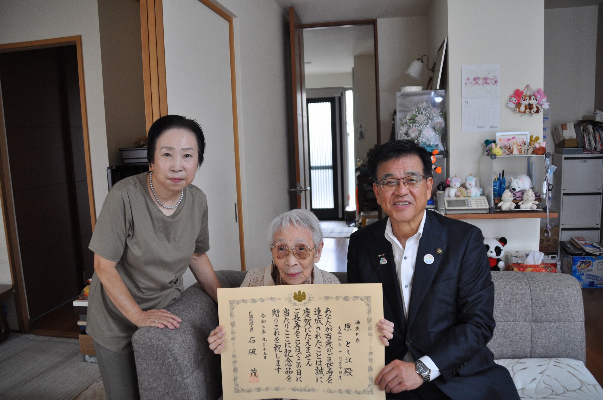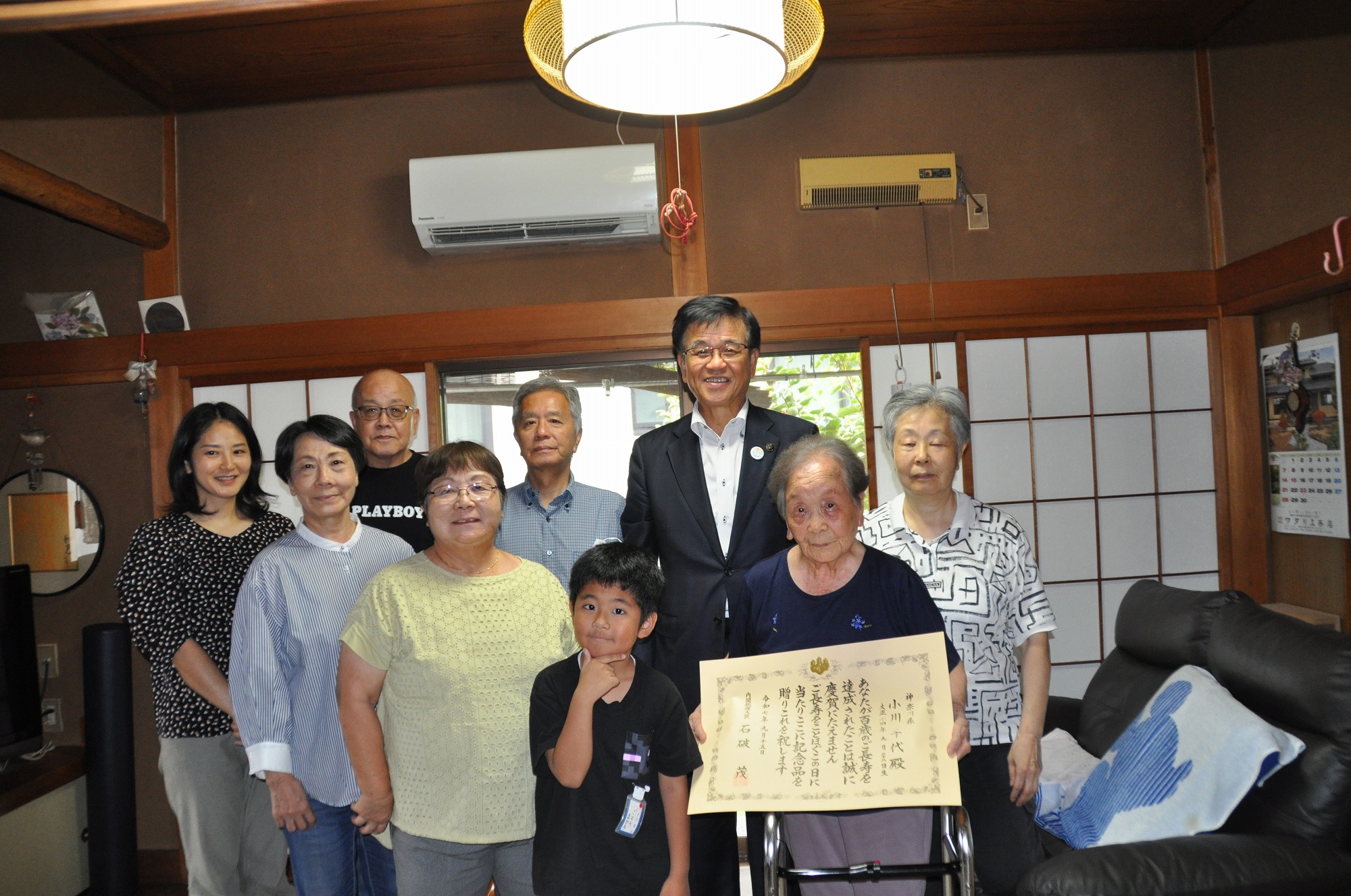 100歳を迎えられる方々のお祝いに伺いました。誠におめでとうございます。